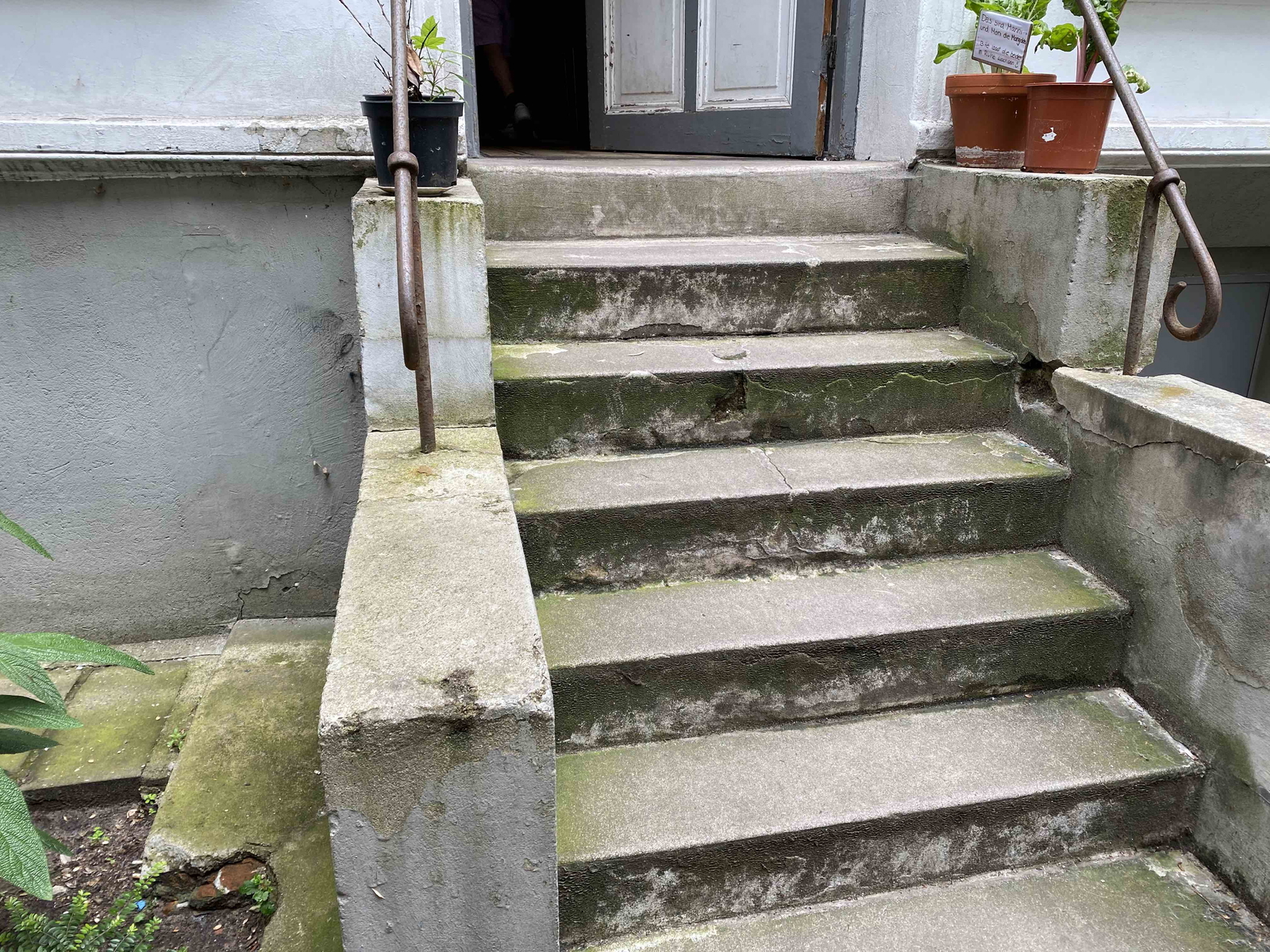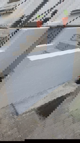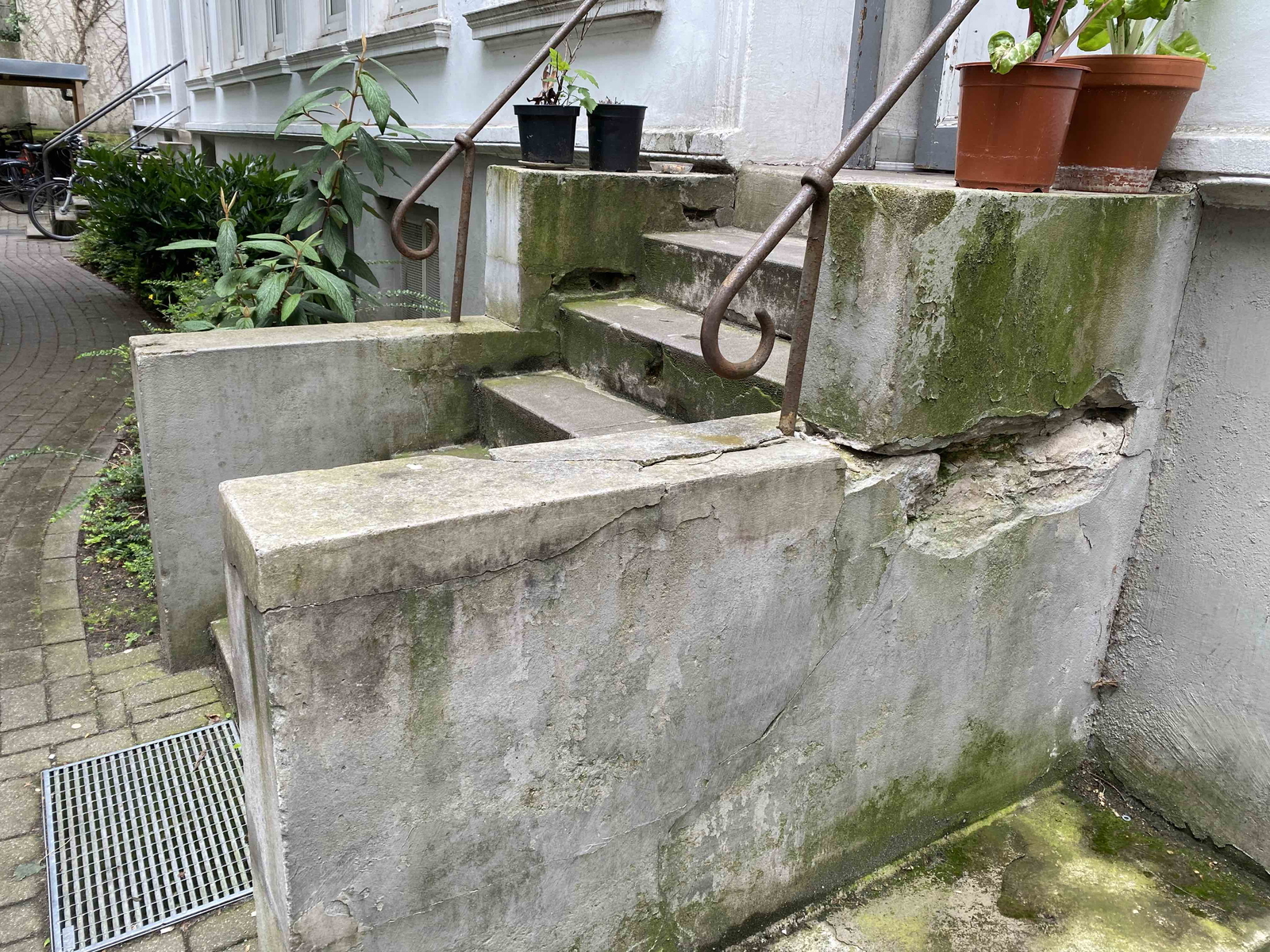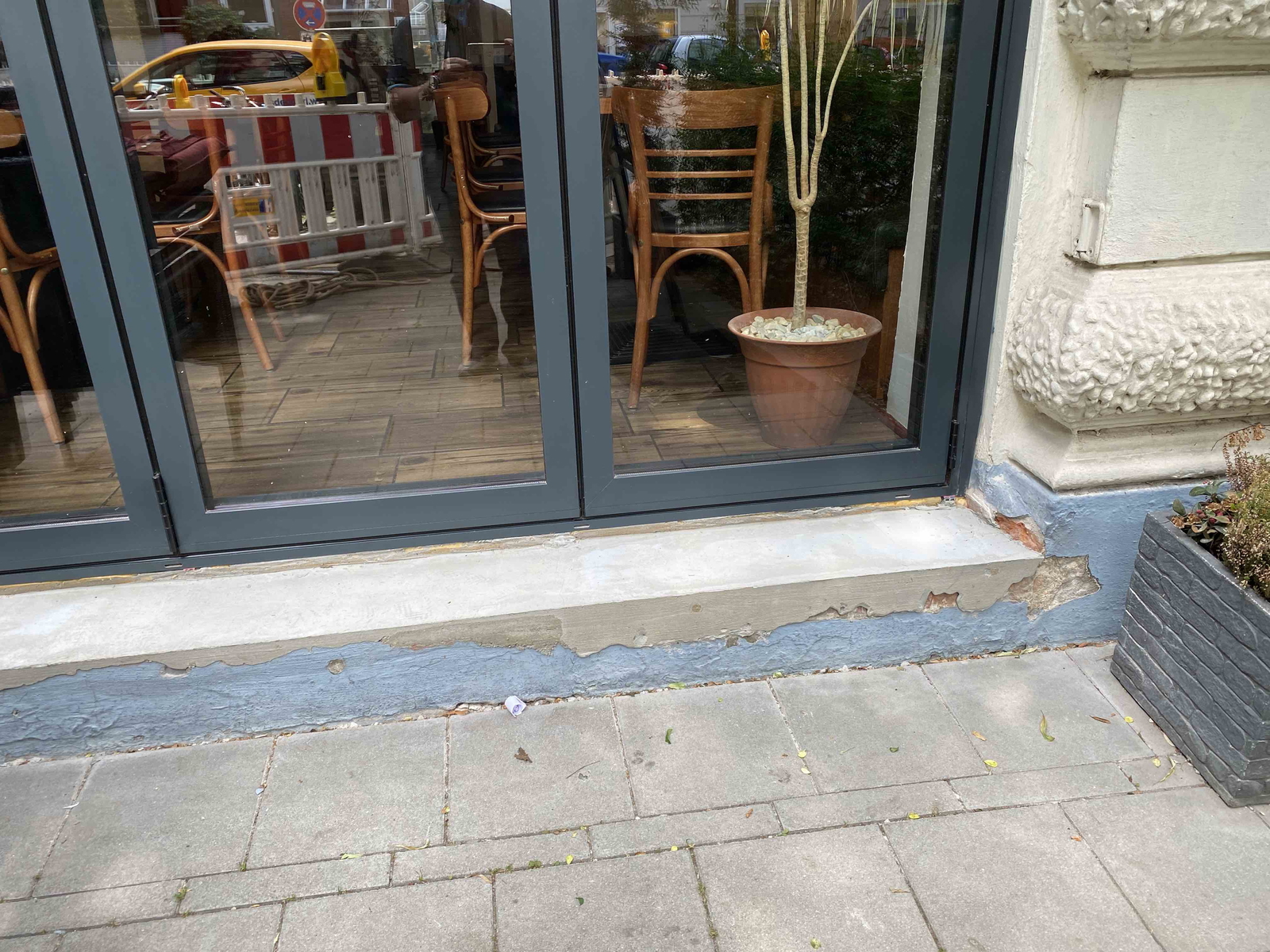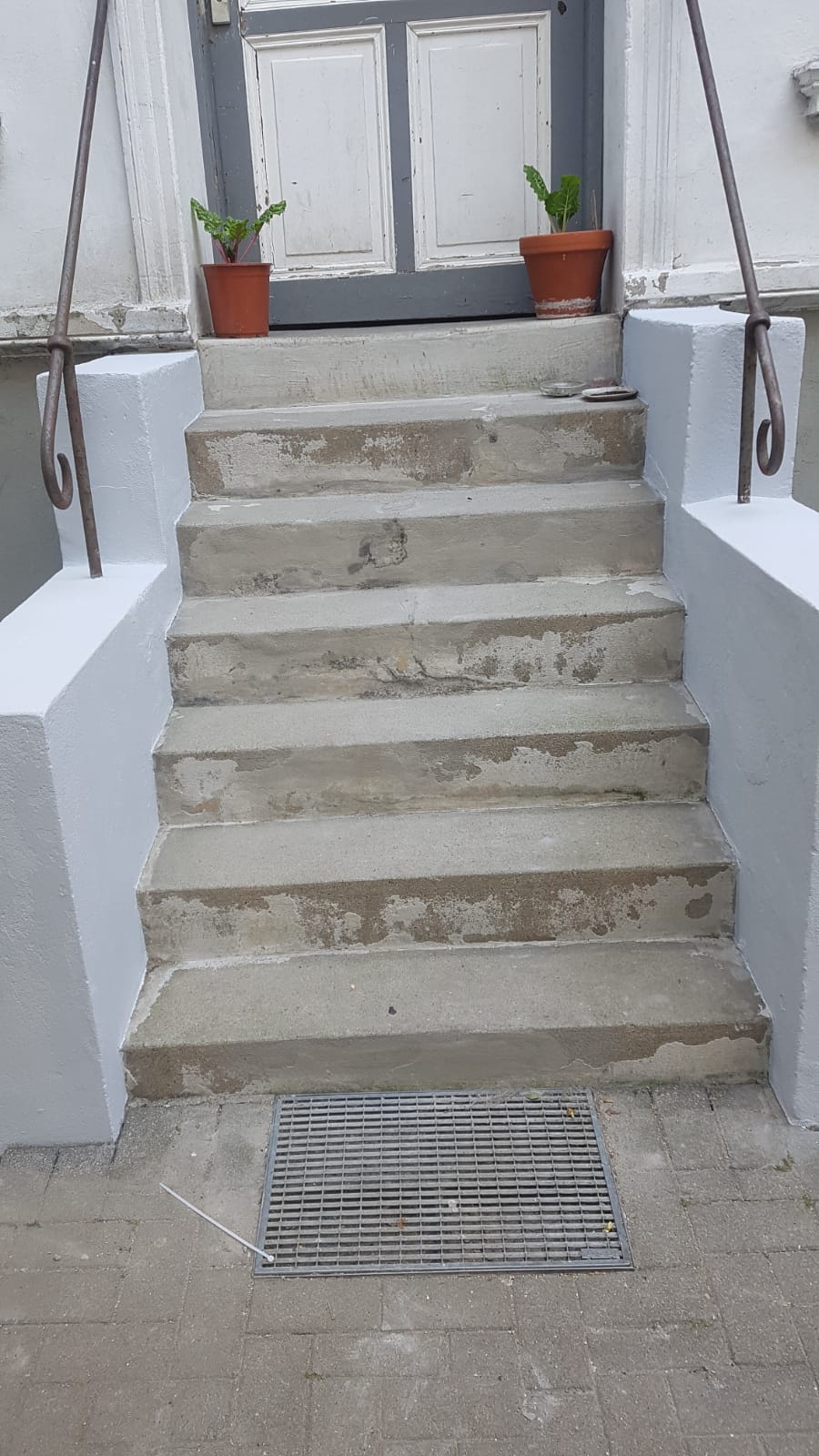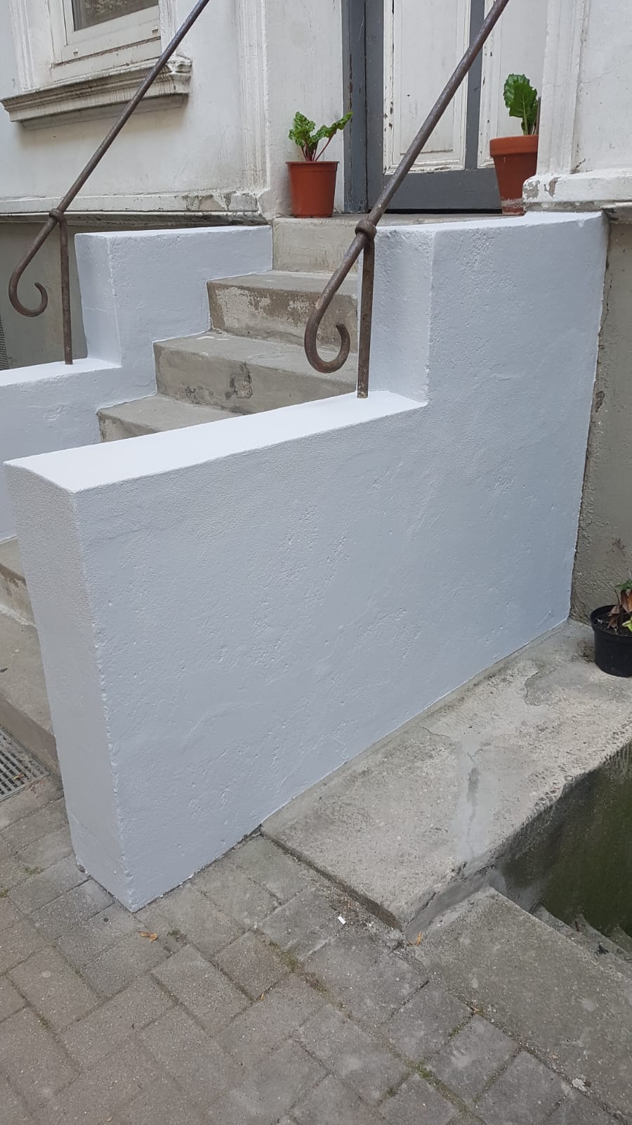 Loser Zementputz wurde abgestemmt, Untergrund vorbereitet und neu hergestellt.