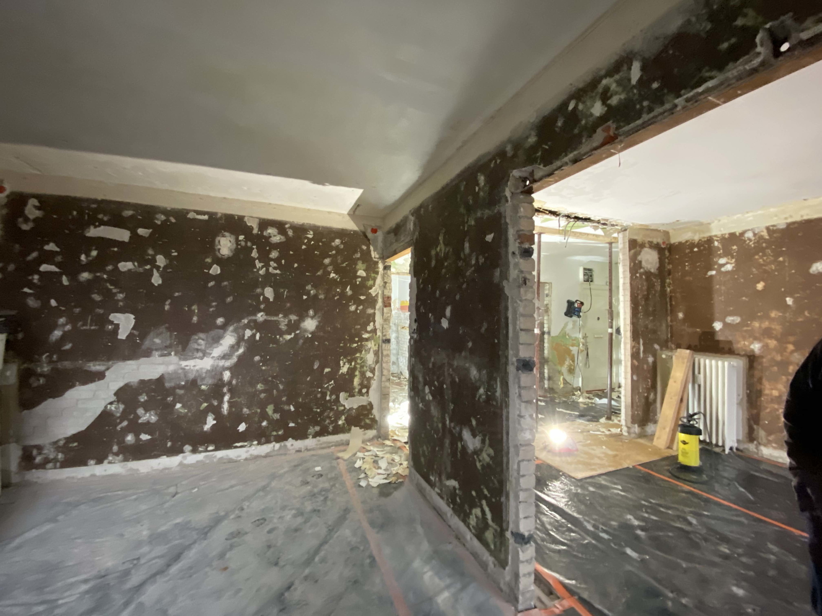 Komplette Sanierung einer 4-Zimmer Wohnung. Abriss-, Putz-, Trockenbau- und Malerarbeiten waren Teil der erbrachten Leistung.